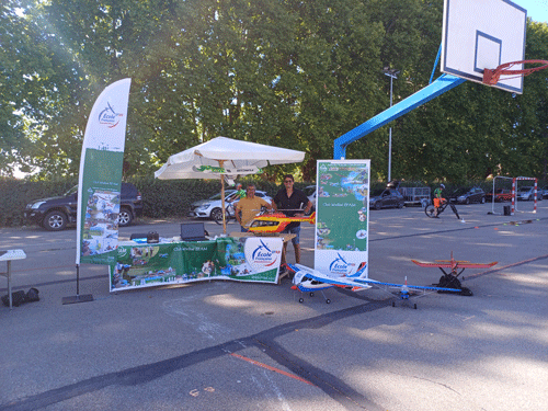 Vendredi nous étions présents au forum des associations. Nous avons exposé des modèles afin de présenter notre passion et de nous faire connaitre. Il y avait un simulateur ce qui a permis aux enfants et plus grands de s’essayer au pilotage. Satisfaits par leurs essais, des rendez-vous ont été donné au terrain pour une initiation. Nous avons rencontré Mr Leyre 1er adjoint ce qui nous a permis de lui présenter notre activité et peut être de voler en indoor Nous remercions la FFAM de l'equipement publicitaire fourni.