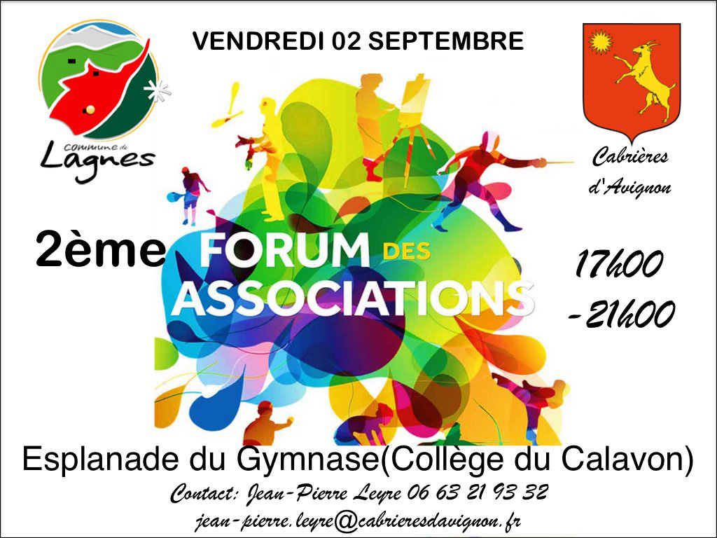 Nous serons présents au forum des associations de 17h à 21h au gymnase du collège du callavon à Cabrières-d'Avignon